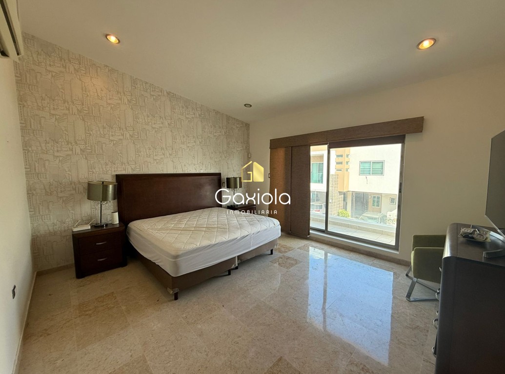 Equipamiento: Cocina integral con isla, estufa, campana, microondas, refrigerador, 6 minisplits, persianas, boiler, centro de lavado.