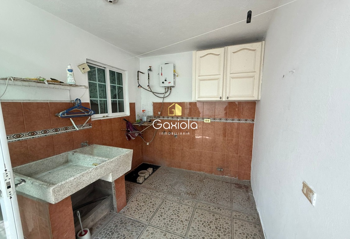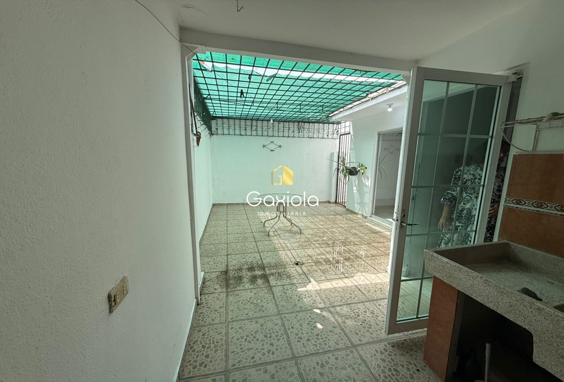 Planta baja: Cochera techada, sala, comedor, cocina, medio baño, cuarto de lavado y patio.